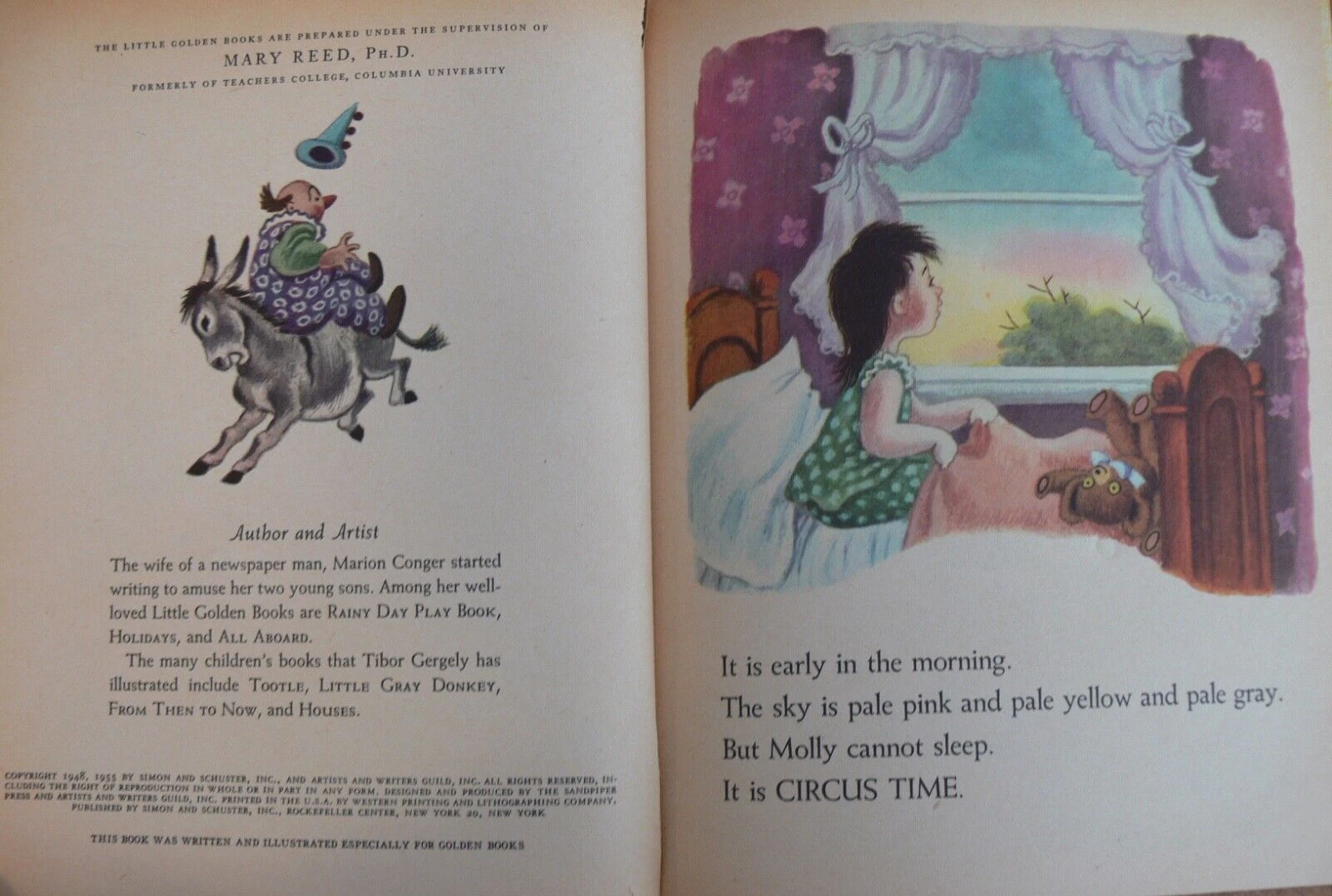 Circus Time, 1948, 1955 copyright, 1st edition, by Marion Conger, pictures by Tibor Gergely. Publisher: Simon and Schuster.
